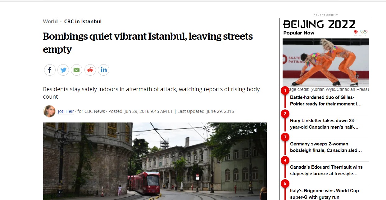 Bombings quiet vibrant Istanbul, leaving streets empty (CBC)
